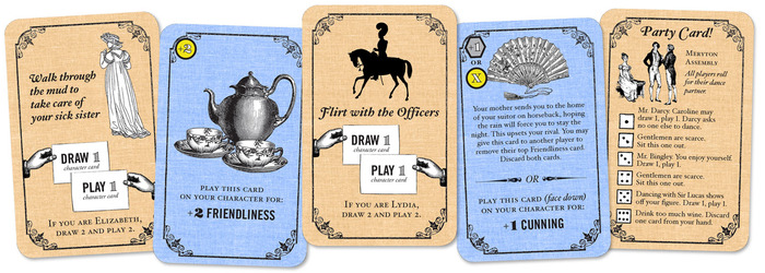 Marrying Mr. Darcy is in its final stages of play-testing, and will launch on Kickstarter with the full art and card design almost complete. The Kickstarter campaign will feature the game at $30, including free shipping to individuals in the US. The campaign will end October 17th.