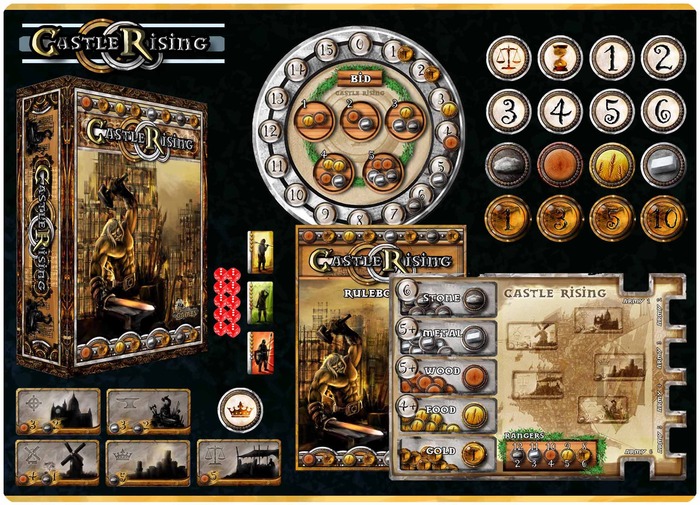 CASTLE RISING is a German-style board game, for 3-6 players. The goal of the game is to set up your economic strategy to create the most prosperous kingdom.